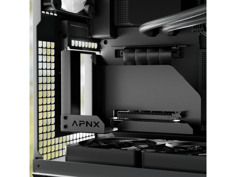 Grafikuskártyád optimális bemutatása A vertikális elhelyezésnek köszönhetően a grafikuskártyád igazi látványelemként tündököl, kiemelve a számítógéped dizájnját. Ez lehetővé teszi az RGB világítás és az egyedi GPU-dizájnok jobb érvényesülését. - Vertikális grafikus kártya elhelyezés a lenyűgöző megjelenésért - A PCI-E 5.0 x16 Riser-kábel biztosítja a GPU teljes teljesítményét - Az acélszerkezet tartósságot és stabilitást nyújt - Kompatibilis az APNX C1 házzal a zökkenőmentes integráció érdekében Prémium anyaghasználat a maximális stabilitásért A tartó masszív acélból készült, amely biztonságos rögzítést biztosít a grafikuskártyának. A készletet kifejezetten az APNX C1 házhoz fejlesztették, így az egyszerű és pontos telepítést garantál. A mellékelt PCI-E 5.0 x16 Riser-kábel gondoskodik róla, hogy a grafikuskártyád teljesítménye ne csökkenjen. Műszaki adatok Szín Alapszín: Fekete Méretek Hossz / Mélység: 121 mm Szélesség: 125 mm Magasság: 196 mm Anyag Anyaghasználat: Acél Világítás Világítás / RGB: Nem