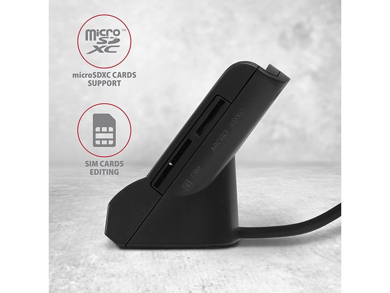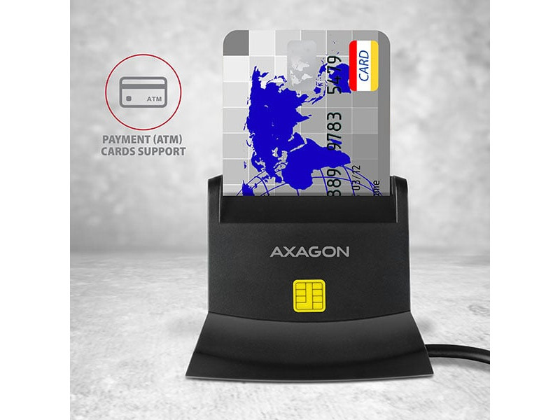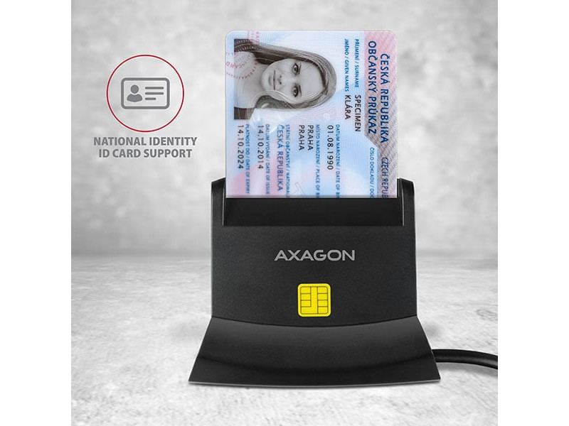 Az asztali AXAGON CRE-SM2 Smart card / ID card kártyaolvasó állvány USB 2.0 interfésszel rendelkezik SD, microSD és SIM kártya nyílásokkal. A kártyaolvasó támogatja az összes gyakori kapcsolat okoskártya, chipkártya és egyéb kártya formátumoakt, beleértve a fizetéses kártyákat is vagy az elektronikus személyi igazolvány kártyákat is. Az olvasó teljesen kompatibilis az eID alkalmazással. A SIM-kezelő szoftverrel ellátott SIM-kártyahelynek, SD-nyílásnak, microSD-nyílásnak köszönhetően az olvasó biztonsági mentéshez és adatátvitelhez is használható. A kompatibilitás az összes olyan általános operációs rendszerrel, mint pl. a Windows, a Linux és a Mac OS, ami széles körű alkalmazást tesz lehetővé. Kifinomult kialakítás, kiváló minőségű gyártás, csúszásgátló párnák és hosszú kábel biztosítja az egyszerű és problémamentes használatot. Műszaki adatok Bemenet: USB 2.0 CCID protokoll. Visszamenőleg USB 1.1 kompatibilis. Csatlakoztatás A ápa típusú USB 2.0 csatlakozón keresztül. Kártyaolvasó: Négy bővítőhely-olvasó támogatás: Az Smart Card nyílás támogatja az ATM / CAC / ID / IC / SIS kapcsolat kártyákat, A microSD nyílás támogatja a microSD / microSDHC / microSDXC / TransFlash kártyákat, Az SD nyílás támogatja a SecureDigital, SDHC, SDXC, MultiMedia kártyákat, MMC 4.0, MMC kettős feszültségű, MMC mobil, RS-MMC kártyákat, miniSD, miniSDHC, MMC Micro kártyákat adapterrel, A SIM-kártyahely támogatja a szabványos méretű SIM-kártyákat (microSIM és nanoSIM adapterrel). Smart kártyák specifikáció támogatása: Támogatása az ISO 7816 A, B és C osztályú kapcsolat intelligens kártyákat (5V, 3V és 1.8V). Támogatása az ISO 7816, az EMV 4.1 (EMV 2000 1 szint) szabványokat. Támogatja a T=0 és T=1, I2C, SLE 4432/42 (S=10), SLE 4418/28 (S=9) protokollokat. PC/SC 2.0 PC Smart Card támogatása. Microsoft Smart Card for Windows támogatása. Támogatása az SLE4418, SLE4428, SLE4432, SLE4442, SLE4436, SLE5536, SLE6636, AT88SC1608, AT45D041 I2C kártyákat. A Microsoft WHQL USB Smart Card Reader megfelelő. A FIPS 201 szabványnak megfelelő. 420 Kbps Smart kártya interfész sebessége (a kártyától függ). Memóriakártyák specifikáció támogatása: SD 1.0/1.1 (SD - Secure Digital, legfeljebb 2GB) kompatibilis. Az SD 2.0 (SDHC - biztonságos digitális nagy kapacitás, legfeljebb 32GB) kompatibilis. SD 3.0 (SDXC - biztonságos digitális kiterjesztett kapacitás, legfeljebb 2TB) kompatibilis. Az MMC és az eMMC 3.x/4.0/4.1/4.2 kompatibilis. További tulajdonságok: A Microsoft USB-CCID illesztőprogram kompatibilis. Plug and Play támogatás. A SIM és a microSD memóriahely egyidejű használata. Smart kártya behelyezés észlelés. SIMedit SW a névjegyek szerkesztéséhez és mentéséhez - töltse le a „Termék támogatás“ fülről a www.axagon.eu webhelyen. Olvasó tápellátás USB-buszon keresztül (bus-power). A zöld LED a számítógép USB-portjának csatlakoztatását jelzi (tartós fénnyel). A piros LED jelzi a kártya behelyezését (tartós fénnyel) és az adatátvitelt (villog). Méretek 77 x 54 x 52 mm, kábelhossz 130 cm. Súly 91 g. Támogatott operációs rendszerek: MS Windows XP / Vista / 7 / 8 / 8.1 / 10 és újabb, Windows Server 2003 / 2008 / 2012 / 2016 és újabb (mind a 32- és 64-bites Windows OS verziók támogatottak), Mac OS X 10.x és magasabb, Linux 2.4.x kernel és magasabb. * Megjegyzés: Az olvasó csak azokat a kártyákat támogatja, amelyek felületén látható érintkezők vannak. Az érintkezők nélküli kártya tehát RFID-nek minősül és nem használható az olvasóban. A csomag tartalma: USB Smart kártyaolvasó rögzített 1.3 m-es kábellel, nyomtatott telepítési útmutató CZ / DE / DK / ENG / ESP / FIN / FR / GR / HR / HU / IT / NL / PL / PT / RO / RU / SK / SWE / BG / CN / TR / ARA, kartondoboz csomagolás.