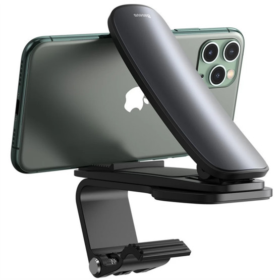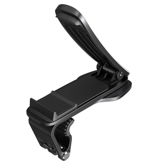 Univerzális, kormány feletti műszerfalra rögzíthető autós telefontartó. Az univerzális autós tartó minden mobiltelefonhoz alkalmas, legfeljebb 6,5 hüvelykes kijelzőméretig. A tartó megbízható és biztonságosan rögzíthető. Használata a sofőrt nem akadályozza a kilátásban. A tartó két csíptetővel rendelkezik, amelyek vízszintes helyzetben tartják a telefont. A telefonttartó csíptetőinek belső része puha szilikonnal van ellátva, amely megvédi a készülék felületét a karcolódástól és a csúszástól.