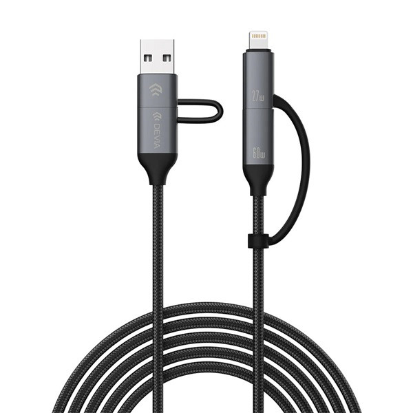 Devia Extreme Speed Series Multi Functions 4in1, USB-A - USB-C (Type-C)/Lightning adat- és töltőkábel, fekete, 1,5m