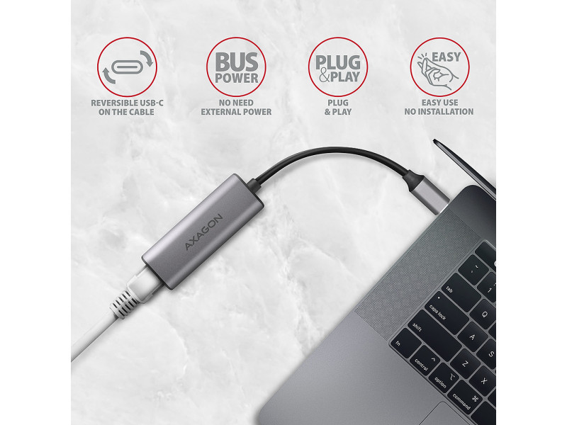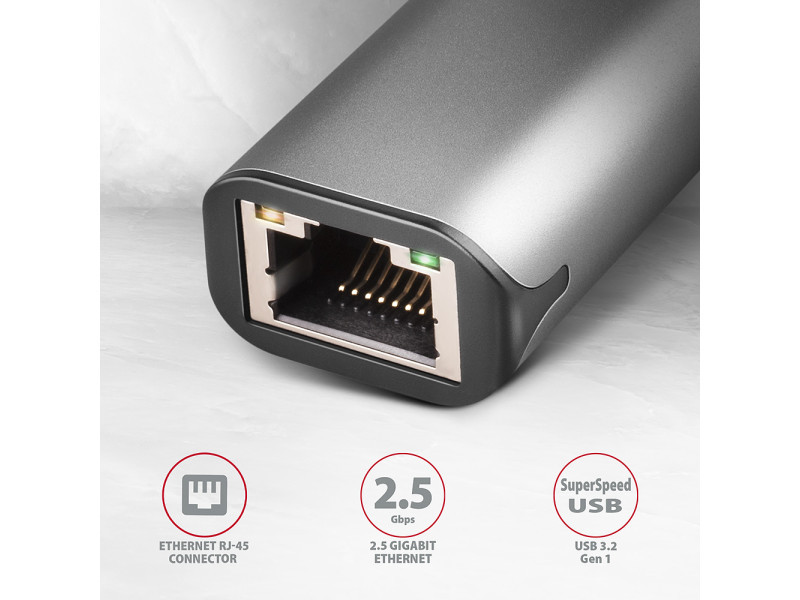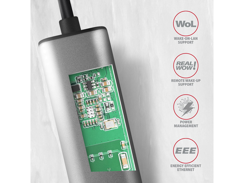 Az AXAGON ADE-25RC külső hálózati kártya könnyen konvertálja az USB-C 3.2 Gen 1 (USB 3.0) portot 2.5 Gigabit Ethernet portra. Kompatibilis a 10/100/1000/2500 Mbit/s átviteli sebességgel. A 2.5 Gb/s hálózati adapter nagyon gyors és stabil hálózati kapcsolattal bővíti a számítógépet, hozzáadja a hiányzó RJ-45 hálózati csatlakozót, egy másik hálózati kártyát, vagy lecseréli az eredeti nem funkcionális hálózati kapcsolatot. A LAN-adapter a 2.5 gigabites átviteli sebesség mellett számos funkciót rendelkezik, mint például. Az IPv4/IPv6 ellenőrző összeg a CPU terhelésének csökkentése érdekében az ellenőrző összegekkel, a keresztezés észlelése és automatikus korrekciója, a TCP nagy küldési terhelése, a Wake-on-LAN különféle módjainak támogatása, munka a virtuális VLAN és a fejlett energiagazdálkodási szolgáltatásokkal. Az IEEE 802.3bz szabvány előnye, hogy a hagyományos Cat 5e és Cat 6 Ethernet kábelek akár 100 m hosszúságban is használhatók a 2.5 Gb/s sebességhez. A fém adapterfedél alumíniumból készül, tökéletes mechanikai védelmet és kiváló hőelvezetést biztosít. Kompakt méreteinek és minimális súlyának köszönhetően ideális kiegészítő a laptopokhoz. A Windows, macOS és Linux operációs rendszerek jelenlegi verzióinak támogatása lehetővé teszi bármely asztali számítógép, laptop vagy ultrabook amely modern, kétoldalas USB Type C csatlakozóval rendelkezik. A Windows 8.1-től minden újabb modern operációs rendszerben az adapter egyszerű automatikus telepítést tesz lehetővé internetkapcsolat nélkül. Bemenet: • Csatlakoztatás közvetlen 1x USB 3.2 Gen 1 / SuperSpeed USB porton USB-C male. • Visszafelé kompatibilis az USB 3.1 Gen 1 / USB 3.0 és USB 2.0. • Kompatibilis a Thunderbolt 3 és 4. • Támogatja a következő átviteli sebességeket 5.000 / 480 / 12 / 1.5 Mb/s (SuperSpeed+ / High / Full / Low speed). • USB-C male (ápa) típusú csatlakozó 15 cm hosszú, fixen a kábelhez rögzített. Kimenetek: • Ethernet interfész RJ-45 csatlakozóval UTP vagy STP kábeles kapcsolattal. • Támogatott átviteli sebesség az Ethernet interfészhez 10/100/1000/2500 Mb/s. • Támogatott specifikációk IEEE 802.3 10Base-T, IEEE 802.3u 100Base-TX, IEEE 802.3ab 1000Base-T, IEEE 802.3bz 2.5GBase-T. • 10/100/1000/2500 Mb/s automatikus észlelés. • Az NBASE-T specifikáció támogatása - akár 2.5 Gbps sebességet tesz lehetővé szabványos UTP Cat5e kábeleken keresztül. • IPv4/IPv6 packet Checksum Offload Engine (COE) támogatás a processzorterhelés csökkentése érdekében, beleértve az IPv4 IP/TCP/UDP/ICMP/IGMP & IPv6 TCP/UDP/ICMPv6 ellenőrzést és ellenőrző számítás generálást is. • TCP Large Send Offload V1 és V2 támogatás. • IEEE 802.1P Layer 2 priority encoding & decoding támogatás. • IEEE 802.1Q VLAN tagging támogatás. • IEEE 802.3az EEE (Energy Efficient Ethernet) támogatás - fogyasztáscsökkentés nyugalmi állapotban. • Jumbo frame támogatás. • IEEE 802.3x flow control full-duplex és back-pressure flow control half-duplex átvitelek támogatása. • Auto MDI/MDIX támogatás - a crossover detektálás és az autokorrekció kiküszöböli a crossover kábel igényt. • Cyclic Redundancy Check (CRC) hardvertámogatás az adatátviteli hibák feltárása érdekében. • Pair Swap/Polarity/Skew Correction támogatás. További tulajdonságok: • Teljes Plug and Play és Hot Plug támogatás. • CDC-ECM támogatás - az illesztőprogramok automatikus telepítéséhez különböző operációs rendszerekhez. • USB gyűjtősínes (bus power) adaptertáplálás - semmilyen kiegészítő megtáplálásra nincs szükség. • Két LED jelzi a hálózati aktivitást és az adapter hálózathoz való csatlakozását. • Méretek 64 x 24 x 14 mm. • Súly 26 g (kábellel együtt). • 15 cm-es USB kábel. • Realtek RTL8156B chipset. Wake-on-LAN funkció támogatása különböző üzemmódokban: • Magic paket, Microsoft Wakeup Frame, Microsoft Wake Packet Detection és Link Change wake-up alvás üzemmód és távoli ébresztés támogatás. • Alvó hostok proxi szerveres hálózati csatlakoztatásának igazgatására szolgáló ECMA-393 proxZzzy® for sleeping hosts standard támogatása. • Internetes távoli ébresztésre szolgáló RealWoW! technológia támogatása. • Haladó szintű Power Management funkciók: Az adapter támogatja a nyugalmi állapotban vagy enyhe hálózati forgalom melletti veszteségeket csökkentő, haladó szintű Power Managementet. Továbbá az Ethernet kábel lecsatlakoztatása esetén támogatja a haladó szintű energiamegtakarítást. • Advanced Configuration Power management Interface (ACPI) támogatás. • Power Management offload (ARP & NS) támogatás. • Microsoft Always On Always Connected (AOAC) támogatás. • Intel Converged Platform Power Management (CPPM) támogatás. • Link Power Management (LPM) támogatás. • Operating System-directed Power Management (OSPM) támogatás. IEEE 802.3az EEE (Energy Efficient Ethernet) támogatás. Támogatott operációs rendszerek: • MS Windows 7 / 8 / 8.1/ 10 / 11 és újabb, Windows Server 2008 / 2012 / 2016 / 2019 / 2022 és újabb (minden 32 bites és 64 bites Windows operációs rendszer verzió támogatott), Mac OS X 10.6 és újabb, Linux kernellel 2.6.14 és magasabb. A csomagolás tartalma: • 2.5 Gigabit Ethernet adapter 15 cm fix USB-C kábellel, • telepítési útmutató CZ / DE / DK / ENG / ESP / FIN / FR / GR / HR / HU / IT / NL / PL / PT / RO / RU / SK / SWE / BG / CN / TR / ARA, • bolti állványra akasztáshoz nyílással ellátott.