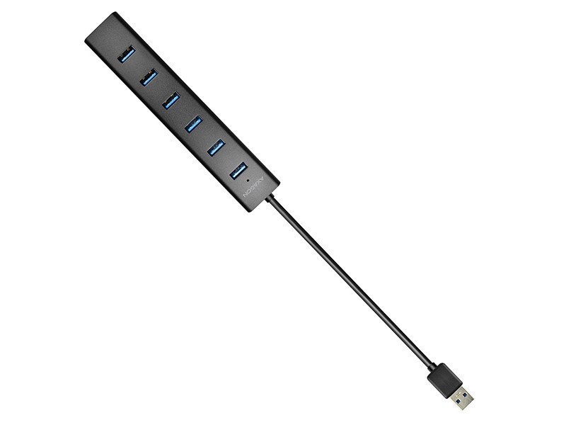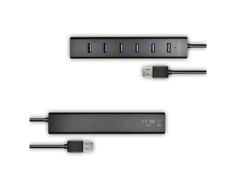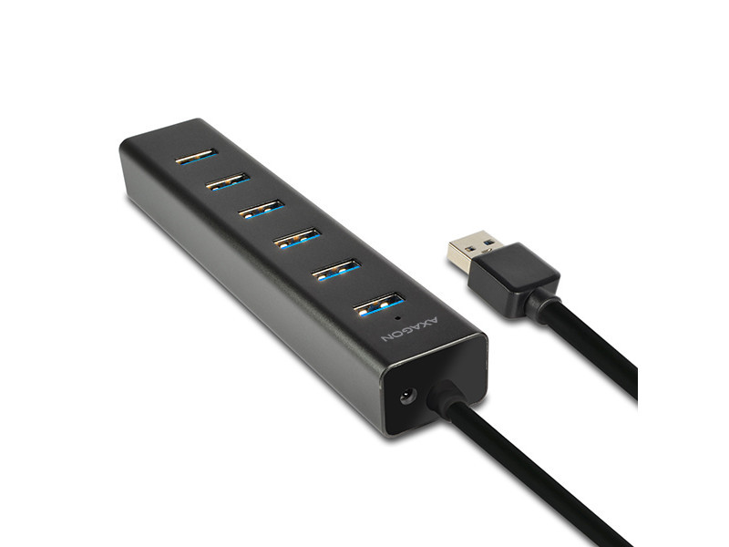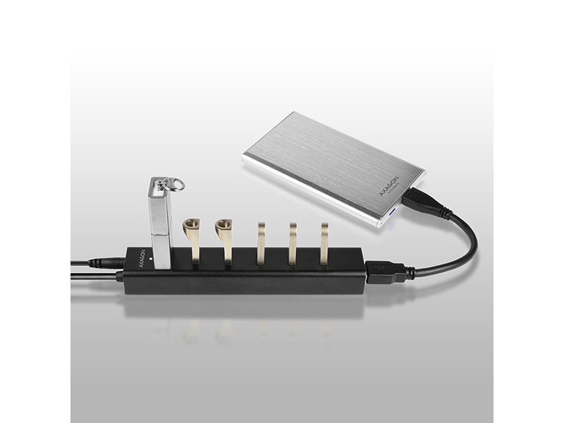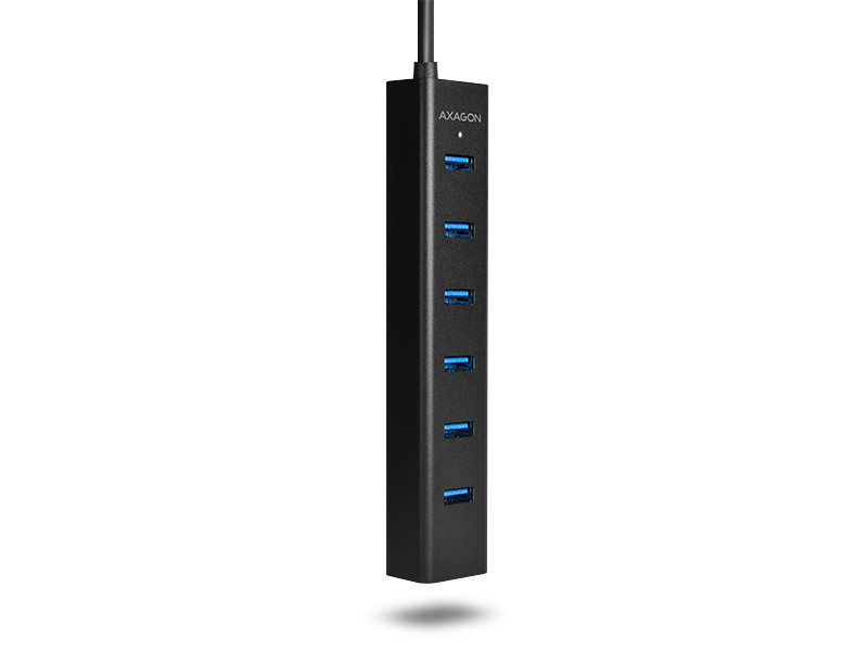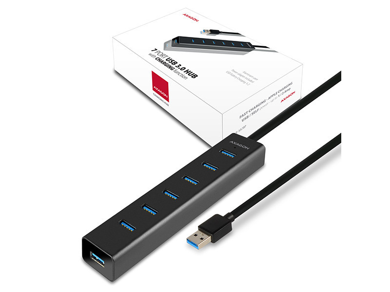 A hét portos AXAGON HUE-SA7BP ALU CHARGING USB 3.0 hub saját áramellátással és gyors töltési támogatással az összes USB portján. Egy kompakt hub tartós alumínium tokkal, mely egyszerre akár hét USB eszközt is képes a számítógéphez csatlakoztatni. Mobiltelefonok, tabletek, külső akkumulátorok és egyéb eszközök is tölthetők akár 2 amper mellett bármely hub porton keresztül, az USB Battery Charging 1.2 technológia támogatásnak köszönhetően. Képes egyszerre akár több külső merevlemezt is kezelni egyéb áramellátás nélkül. Saját áramellátásával négy, 2.5"-os külső merevlemezt képes kezelni. Az USB portok a hub teljes felületén helyezkednek el, egymástól megfelelő távolságra, hogy ne akadályozzák a nagyobb USB eszközök csatlakozását sem. A véglegesen rögzített USB kábel 40 cm-es hossza főként a laptopot használók számára ideális. Különálló töltő hubként is használható, és az adapterrel akkor is tölthetők az USB eszközök, amikor a PC nincs bekapcsolva vagy csatlakoztatva. A csomag tartalma a kompakt, 5V/2A-s tápkábel is. Tulajdonságok: • 7 downstream USB 3.0 port, elegendő hellyel a csatlakozók körül. • egy upstream USB 3.0 port USB 3.0 Type A apa csatlakozóval, amely egy 40 cm hosszú kábel végén található. • Kompatibilis az USB 3.0-val és visszafelé kompatibilis az USB 2.0 és 1.1-gyel. • Támogatja a következő átviteli sebességeket: 1.5 / 12 / 480 / 5000 Mb/s (low / full / high / super speed). • Támogatja az USB Battery Charging v 1.2 specifikációt. • Mindegyik hub port felhasználható 2 amperes töltéshez. • Lehetőség a készülék csatlakoztatására a Hot Plug támogatásának köszönhetően. • Teljes Plug and Play támogatás. • A tápcsatlakozó hub csatlakozójának LED-es kijelzése. • Túltöltés észlelése és védelem. • Hub mérete: 156 x 30 x 21 mm, AC adapter mérete: 29 x 75 x 80 mm, csatlakozóval együtt. • Hub súlya: 88 g (kábellel együtt), AC adapter súlya: 100 g (kábellel együtt). A hub áramellátó módja USB kábelen keresztül (busz áramellátás): • Az USB busz teljesítménye elegendő ahhoz, hogy ellássom egy alacsony energiafogyasztású (egér, billentyűzet, kártyaolvasó, flash lemez stb.) eszközt, vagy saját áramellátással (nyomtató, lapolvasó, 3.5" külső lemez) a hét porthoz csatlakoztatva. • Ebben az üzemmódban az USB hub egyidejűleg akár két mágneses 2.5" külső merevlemezzel is képes megbirkózni vagy hárommal, ha egymás után vannak kötve. • Ebben a módban lehetséges a mobilkészülékek (például az iPadek) töltése, azonban a töltőáram csak 0,9A. Saját hub áramellátás a csomagban található kábellel (saját áramellátás): • Saját áramellátás a csomagban található AC/DC adapterrel (bemenet: 100-240V~, 50/60Hz, 0.45A, kimenet: 5V-2A / 10W, két tűs Euro csatlakozó, kimeneti koax csatlakozó átmérője: 3.5/1.3 mm, 150cm-es kábel). • Ebben az üzemmódban az USB hub egyidejűleg akár négy mágneses 2.5" mágneses külső merevlemezzel is képes megbirkózni. Javasoljuk azonban, hogy max. 3 külső 2.5"-es mágneses merevlemezt csatlakoztasson egyidejűleg a megbízható, hosszú távú hub működéshez. • A hordozható eszközök (ideértve az iPadek) gyors feltöltése akár 2A-ig mindegyik hubportban. A töltés során a hub által biztosított teljes áramot a külső tápegység kimeneti árama korlátozza max. 2 amperre. Független töltő hub mód a számítógéphez csatlakoztatás nélkül (töltő hub): • Miután kikapcsolta a csatlakoztatott PC-t, vagy anélkül, hogy a számítógéphez lenne csatlakoztatva, a hub a csomagban található hálózati töltőn keresztül működik USB töltőállomásként is. • A hordozható eszközök (ideértve az iPadek) gyors feltöltése akár 2A-ig mindegyik hubportban. A töltés során a hub által biztosított teljes áramot a külső tápegység kimeneti árama korlátozza max. 2 amperre. OR támogatás: • MS Windows XP / Vista / 7 / 8 / 8.1 / 10 vagy újabb, Windows Server 2003 / 2008 / 2012 vagy újabb (az összes 32- és 64-bites Windows rendszer támogatott), Mac OS X 10.4x vagy újabb, Linux kernel 2.6.x vagy újabb. • Megjegyzés: Az illesztőprogramok az operációs rendszerekben megtalálhatók, és teljesen automatikusan telepítésre kerülnek. Nincs szükség más drivert telepíteni, és el sem érhetők. A csomag tartalma: • USB 3.0 hub rögzített 40 cm-es kábellel, • tápadapter, • többnyelvű kézikönyv CZ / DE / DK / ENG / ESP / FIN / FR / GR / HR / HU / IT / NL / PL / PT / RO / RU / SK / SWE / TR / BG / CN / ARA, • kartondobozba csomagolva.