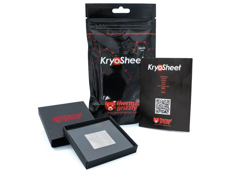 A Thermal Grizzly KryoSheet sorozatú grafén hővezető lapjai kiváló alternatívaként használhatók a nagyobb teljesítményű szegmensből származó hőpaszták helyett. A Carbonaut lapokhoz hasonlóan alkalmazkodó felülettel rendelkeznek, nagyon magas hővezető képességgel. A Carbonaut lapokhoz képest a KryoSheet mint csúcstermék lényegesen magasabb hővezető képességet kínál. Ez a megnövelt hővezető képesség nemcsak az anyagválasztásnak, hanem az innovatív gyártási folyamatnak is köszönhető. A KryoSheet nem tartalmaz folyékony összetevőket, és ezért a hagyományos hővezető pasztákhoz hasonlóan nincs kitéve a szokásos öregedésnek. Kiszáradás nem lehetséges. A KryoSheet felhasználására példa a használt grafikus kártyák és notebookok/laptopok újragyártása (felújítása). A lapokat olyan méretben kell megvásárolni, amely minimálisan nagyobb, mint a lefedendő terület. Egy 32 x 32 mm-es (IHS) méretű Intel asztali CPU (socket 115x, 1200) esetében 33 x 33 mm-es a KryoSheet-et kell választani. Az érintkezési felület (CPU, CPU-hűtő, GPU, GPU-hűtő) megtisztítása után a KryoSheet-et a hűtő felszerelése előtt egyszerűen rá kell helyezni a hűtendő processzorra vagy grafikus chipre. Figyelem! A KryoSheet hővezető lapok elektromosan vezetőek, és nem érintkezhetnek elektromos alkatrészekkel! Ajánlott alkalmazás: 24 x 12 mm : Intel mobil CPU-k 25 x 25 mm : Nvidia RTX 2080, RTX 3060 GPU-k 29 x 25 mm 33 x 33 mm : AMD Sockel AM5 CPU-k 38 x 38 mm : AMD Sockel AM3(+), AM4, Intel Sockel 1700, 2066, 2011 CPU-k 50 x 50 mm : Intel Sockel 3647, 4677 CPU-k, egyedi vágás Műszaki részletek: Méretek: 25 x 25mm x 0,2 mm. Anyag: grafit Szín: fekete/szürke Elektromosan vezető: Igen Alkalmazási hőmérséklet: -250 °C / +150 °C