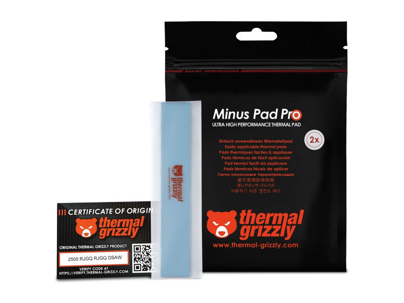 Nagy teljesítményű alternatíva a hővezető paszta helyett A Thermal Grizzly Minus Pad Pro a hamburgi hűtéstechnikai specialista legújabb fejlesztése, amely tovább bővíti a vállalat innovatív hővezető padjainak kínálatát. Az előző Minus Pad 8 alapjaira építve továbbfejlesztették, hogy jelentősen növeljék a hővezető képességet. A Minus Pad Pro kiválóan alkalmas olyan alkalmazásokhoz, ahol a hővezető paszta felvitele nehézkes, vagy a hőforrás és a hűtőborda közötti távolságot kell áthidalni. Ezért különösen ajánlott memóriachipek és feszültségátalakítók hűtésére. A pad szilikon alapú hordozókomplexet és alumínium-oxidot használ hőátadó közegként, így hasonló hővezető képességet biztosít, mint a hővezető paszták. A Minus Pad Pro különböző méretekben és vastagságokban elérhető 0,5 és 3 mm között. Mivel már minimális nyomás mellett is optimálisan működik, és a vastagság alig befolyásolja a hővezető képességet, a megfelelő méret kiválasztásánál csupán a szükséges távolságot kell figyelembe venni. Műszaki adatok: Szín: Szürke Méretek Hossz / Mélység: 120 mm Szélesség: 20 mm Magasság: 0,5 mm Anyag Anyagok: Alumínium-oxid Elektromosan vezető: Nem