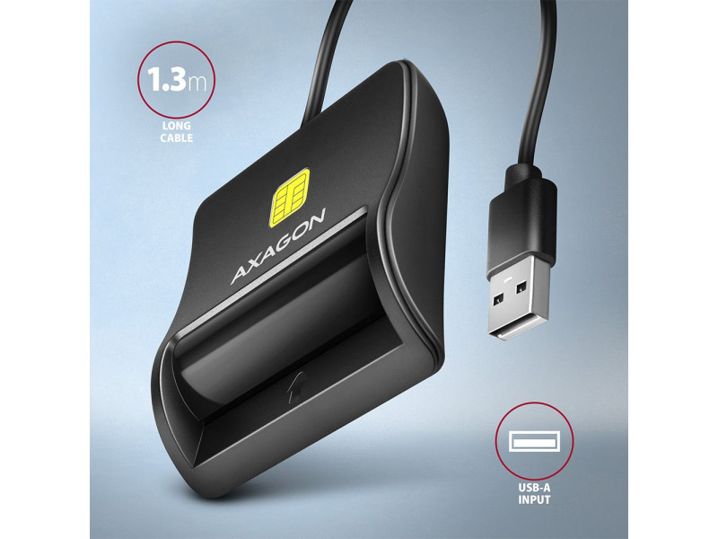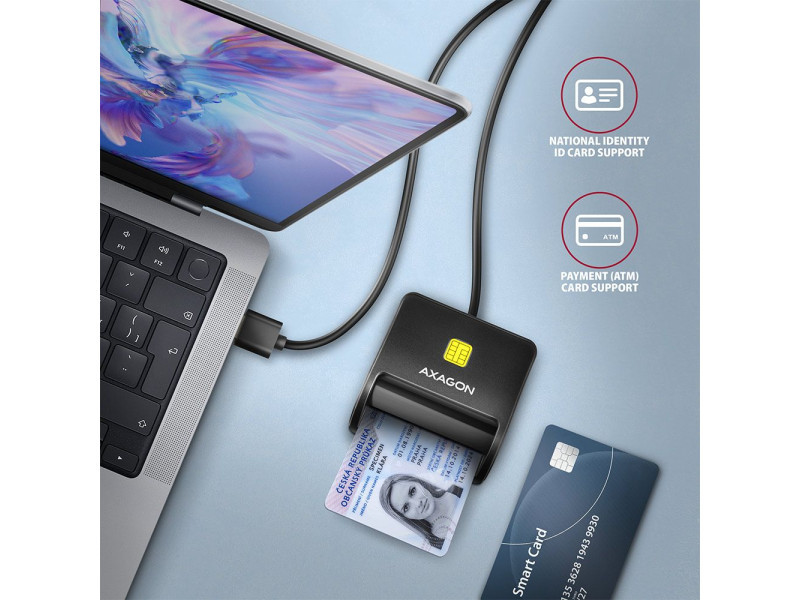 Kompakt asztali Smart card / ID card AXAGON CRE-SM3N FlatReader kártyaolvasó USB 2.0 interfésszel. A kártyaolvasó támogatja az összes gyakori okoskártya, chipkártya és egyéb kártya formátumoakt, beleértve a fizetéses kártyákat is vagy az elektronikus személyi igazolvány kártyákat is *. Az olvasó kompatibilis a legtöbb nemzeti elektronikus azonosító kártyával eID használatra (elektronikus személyi igazolvány). A kompatibilitás az összes olyan általános operációs rendszerrel, mint pl. a Windows, a Linux Mac OS és Android, ami széles körű alkalmazást tesz lehetővé számítógépeken és laptopokon, valamint telefonokon és táblagépeken. Az intelligens LED jelző röviddel a tevékenység megváltoztatása után kigyullad, majd kialszik, és nem zavarja a felhasználót a szükségtelen fénnyel. Kompakt kialakítás, kiváló minőségű gyártás, csúszásgátló párnázat és hosszú kábel biztosítja az egyszerű és problémamentes használatot. Bemenet: • USB 2.0 CCID protokoll. • Visszamenőleg USB 1.1 kompatibilis. • Csatlakozás számítógéphez USB 2.0 A típusú csatlakozón keresztül. • USB-C csatlakozóval rendelkező telefonhoz vagy táblagéphez USB-C -> USB-A csökkentést javasolunk, pl. AXAGON RUCM-AFA. Mikro-USB-csatlakozóval rendelkező telefonhoz való csatlakoztatáshoz OTG-csökkentő micro USB -> USB-A ajánlunk. Kártyaolvasó: • 1 nyílás támogatja az ATM / CAC / ID / IC / SIS kártyákat. • Támogatja az ISO 7816 A, B és C kapcsolat osztályú intelligens kártyákat (5V, 3V és 1.8V). • Támogatja az ISO 7816, az EMV 4.1 (EMV 2000 1. szint) szabványokat. • Támogatja a T=0 és T=1, I2C, SLE 4432/42 (S=10), SLE 4418/28 (S=9) protokollokat. • PC/SC 2.0 PC Smart Card támogatása.• PC / SC 2.0 PC Smart Card támogatása. • Microsoft Smart Card for Windows támogatás. • Támogatja az I2C SLE4418, SLE4428, SLE4432, SLE4442, SLE4436, SLE5536, SLE6636, AT88SC1608, AT45D041 kártyákat. • A Microsoft WHQL USB Smart Card Reader megfelelő. • FIPS 201 szabványnak megfelel. További tulajdonságok: • A Microsoft USB-CCID illesztőprogram kompatibilis. • Plug and Play támogatás. • Készenléti támogatás, automatikus készenlét. • Olvasó teljesítmény USB-buszon keresztül (bus-power). • A LED a számítógép USB-portjának csatlakoztatását jelzi (tartós fénnyel). • Csúszásgátló gumi betétek, amelyek megakadályozzák az asztal spontán mozgását. • Méretek 67 x 63 x 20 mm, kábelhossz 1.3 m. • Súly 57 g. Támogatott operációs rendszerek: • MS Windows XP / Vista / 7 / 8 / 8.1 / 10 / 11 vagy újabb, Windows Server 2003 / 2008 / 2012 / 2016 / 2019 / 2022 vagy újabb (az összes 32- és 64-bites Windows rendszer támogatott), Mac OS X 10.x vagy újabb, Linux 2.6.x kernellel vagy afelett és Android 8 és újabb. * Megjegyzés: Az olvasó csak azokat a kártyákat támogatja, amelyek felületén látható érintkezők vannak. Az érintkezők nélküli kártya tehát RFID-nek minősül és nem használható az olvasóban. A csomagolás tartalma: • USB Smart kártyaolvasó rögzített 1.3 m-es kábellel, • többnyelvű használati útmutató CZ / DE / DK / ENG / ESP / FIN / FR / GR / HR / HU / IT / NL / PL / PT / RO / RU / SK / SWE / BG / CN / TR / ARA, • bolti állványra akasztáshoz nyílással ellátott.