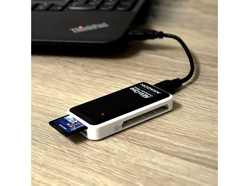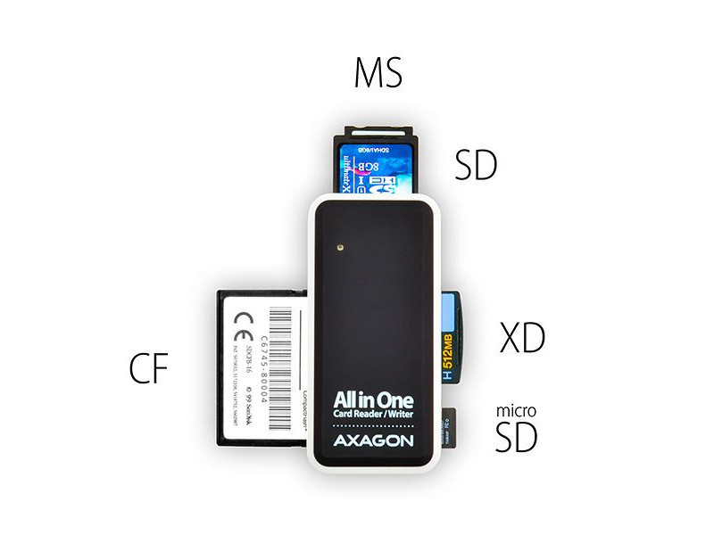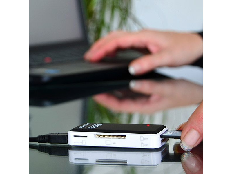 Bemenet interfész : USB 2.0 / USB 1.1 sebesség : 480 / 12 Mbit/s (high / full speed) csatlakozó : USB 2.0 mini B anya csatlakozó (az olvasón) csatlakozó : USB Típus A apa csatlakozó (a kábelen) kábel : 10 cm, lecsatlakoztatható Kártyaolvasó foglalatok száma : 5 SD foglalat : SD / SDHC / SDXC, MMC, MMC mobile, RS-MMC, miniSD / miniSDHC / MMC Micro adapterrel microSD foglalat : microSD / microSDHC / microSDXC / TransFlash MS foglalat : MS, MS Pro, MS Duo, MS Magic Gate, MS Pro Duo Magic Gate, Memory Stick Pro HG Duo, M2 / MS Micro adapterrel CF foglalat : CompactFlash Type I, CF Type II, CF Extreme III, CF Ultra II, Microdrive, Magicstor XD foglalat : xD Picture Card, xD Type M, xD Type M+, xD Type H, SmartMedia kártyák nem támogatottak Támogatott tulajdonságok automatikus telepítés : igen SD flash kártyák specifikációi : SD 1.0 / SD 1.1 (SD - Secure Digital, max. 2 GB) SD flash kártyák specifikációi : SD 2.0 (SDHC - Secure Digital High Capacity, max. 32 GB) SD flash kártyák specifikációi : SD 3.0 (SDXC - Secure Digital eXtended Capacity, max. 2 TB) MMC flash kártyák specifikációi : MMC 3.x, MMC 4.0/4.1, MMC 4.4 (8-bit) MS flash kártyák specifikációi : MS 1.43, MS Pro 1.05, MS Pro HG 1.03 (4-bit), MS XC 1.0 (max. 2TB) CF flash kártyák specifikációi : CF 5.0 (UDMA 0 - UDMA 6) fájl formátumok : FAT 12/16/32/64, NTFS, exFAT (FAT 64) és továbbiak Plug and Play : igen Hot Plug : igen Hot Swap : igen Egyéb tulajdonságok jelzés : piros LED - helyes kártyabeillesztés (folyamatosan ég), adatátvitel (villog) ikonok száma : 1 LUN - az olvasó egy meghajtóként jelenik meg a fájlkezelőkben méretek : 75 x 37 x 13 mm súly : 23 g (USB kábel nélkül) Áramellátás : igen (USB busz energiaellátás) OS támogatás MS Windows : 10 / 8.1 / 8 / 7 / Vista / XP (összes 32 és 64 bites változat) MS Windows Server : 2016 / 2012 / 2008 / 2003 (összes 32 és 64 bites változat) Mac OS : X 10.x vagy újabb Linux : kernel 2.6.x vagy újabb