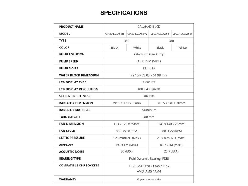Lian Li GALAHAD II LCD 360 egy stílusos és nagy teljesítményű all-in-one vízhűtési rendszer digitálisan címezhető RGB világítással és PWM ventilátorokkal. A speciális háromkamrás kialakítás, a nagy teljesítményű, 8. generációs Asetek szivattyú és a kiváló minőségű, 120 mm-es ventilátorok biztosítják a hatékony hűtési teljesítményt. Az AiO szivattyúfedele IPS kijelzővel rendelkezik, amelyen megjelenítheti például a CPU vagy a GPU hőmérsékletét animált effektusokkal együtt.