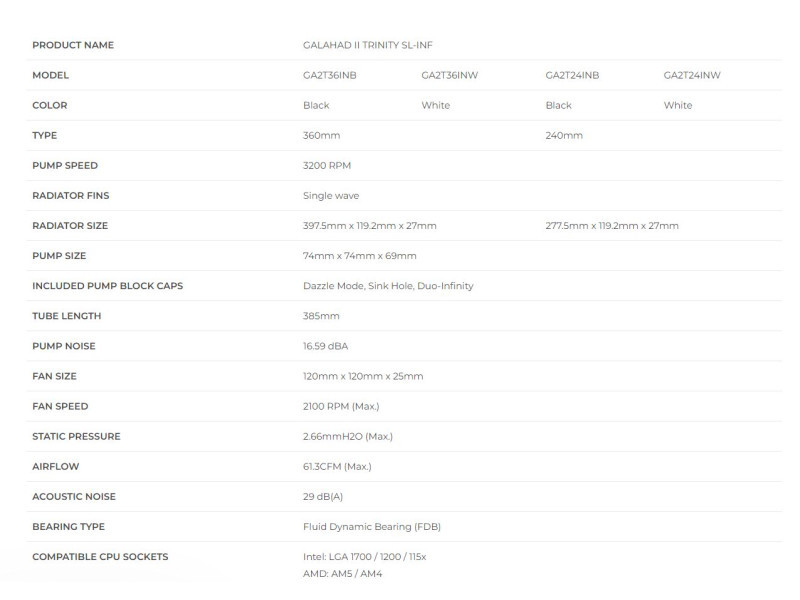A Lian Li Galahad II Trinity SL-INF számos finomítást kapott az előző generációhoz képest, amelyek segítenek fenomenális hűtési teljesítményt nyújtani. A radiátor kialakítása magasabb és szélesebb lett, lehetővé téve a nagyobb felületet a hőátadáshoz, ezenkívül a bordák távolabb vannak egymástól, növelve az áramlási sebességet a kötegen keresztül.