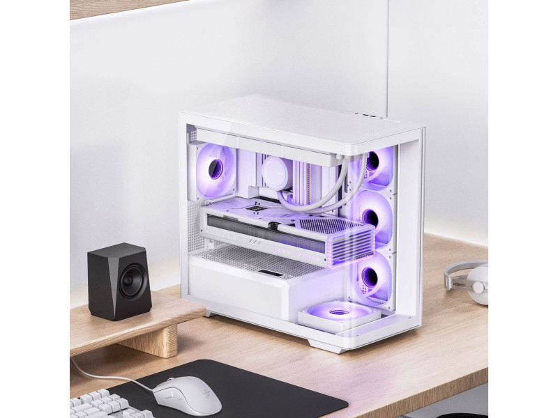 Az oldalsó és elülső edzett üvegpanel tökéletes betekintést nyújt a ház belsejébe, így az RGB világítás még jobban érvényesül.