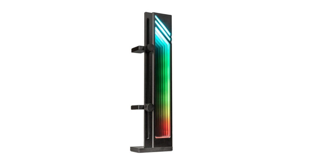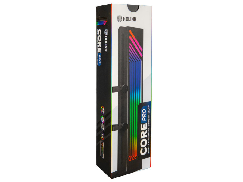 Alumínium GPU-konzol nehéz grafikus kártyákhoz Két GPU-t képes támogatni, maximális magassága 170 mm Állítható magasság a biztonságos illeszkedés érdekében ARGB világítás végtelen tükörhatással Könnyen telepíthető Kétoldalas szalag mellékelve Műszaki adatok: Méretek: 48.5 x 179.5 x 31.5 mm (Sz x Ma x Mé) Anyag: Alumínium, Műanyag LED-ek száma: 9 Csatlakozás: 3 tűs 5V ARGB (5VDG) Feszültség: 5 V Energiafogyasztás: 1.62 W