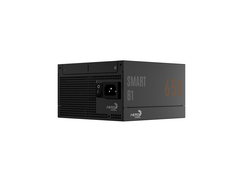 Az AeroCool SMART B1 650 megbízható, ATX 3.1 kompatibilis, 80 PLUS Bronze hatékonyságú tápegység, amely kompakt, 140 mm-es mélységével és lapos, nem moduláris kábelezésével könnyű szerelhetőséget kínál. A 135 mm-es FDB ventilátor visszafogott ventilátorgörbével csendes működést biztosít kis terhelésen. A modern VGA-khoz natív 12V-2×6 csatlakozóval (PCIe 5.1) és két darab 6+2 pines PCIe kivezetéssel érkezik, a CPU-t pedig 1× 8-pin és 1× 4+4-pin EPS csatlakozó látja el. A 12 V ág 54 A-t ad le (648 W), a 3.3 V és 5 V ágak DC-DC átalakítást kapnak, az APFC és a rezonáns konverter pedig stabil, tiszta tápellátást nyújt. A hosszú távú megbízhatóságot 105 °C minősítésű kondenzátorok, kiterjedt védelemkészlet (OVP/UVP/OPP/SCP/OCP/OTP, valamint bemeneti surge & inrush) és 7 év garancia támogatja; ErP 2013/2014 kompatibilis, készenléti fogyasztása <0,25 W. Műszaki adatok Teljesítmény és hatékonyság Névleges teljesítmény: 650 W 12 V ág: 54 A / 648 W Hatékonyság: 80 PLUS Bronze ErP kompatibilitás: ErP 2013 Lot 6, ErP 2014 Lot 3 MTBF: 100 000 óra Csatlakozók PCIe 12V-2×6 (16-pin): 1 PCIe 6+2-pin: 2 PCIe 6-pin: 0 PCIe 8-pin: 0 CPU EPS: 1× 8-pin + 1× 4+4-pin SATA: 8 Molex (Peripheral): 2 Kábelezés Moduláris kábelezés: Nem Kábelkialakítás: lapos fekete vezetékek Jellemző kábelhosszak: 24-pin 600 mm; 2× CPU 700 mm; PCIe 650 mm; SATA 500+150 mm; SATA+Peripherals 500+150 mm Hűtés Ventilátor átmérő: 135 mm Csapágyazás: FDB Félpasszív működés: Nem Ventilátor vezérlés: Nem (low-profile fan curve) Szabványok és védelem Szabvány: ATX 3.1 / PCIe 5.1 (12V-2×6) Védelmek: OVP, UVP, OPP, SCP, OCP, OTP, bemeneti surge & inrush Fizikai adatok és garancia Formátum: ATX Méretek (Sz × Ma × Mé): 150 × 86 × 140 mm Hosszúság / mélység: 140 mm Üzemi hőmérséklet: 0–40 °C Tanúsítványok: FCC, CE, CB (IEC 62368-1), UKCA, RCM, TUV, cTUVus, CP65 Világítás: Nem Szoftverrel: Nem Garancia: 84 hónap