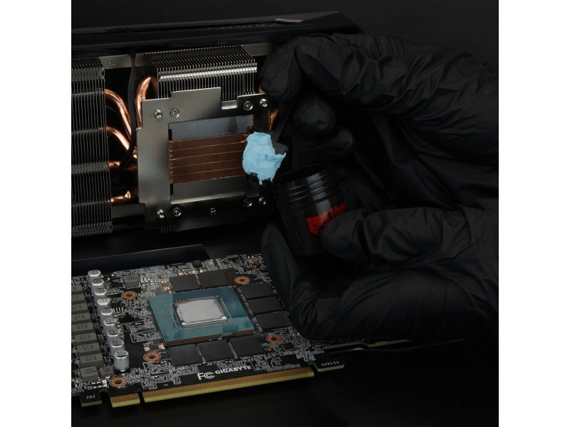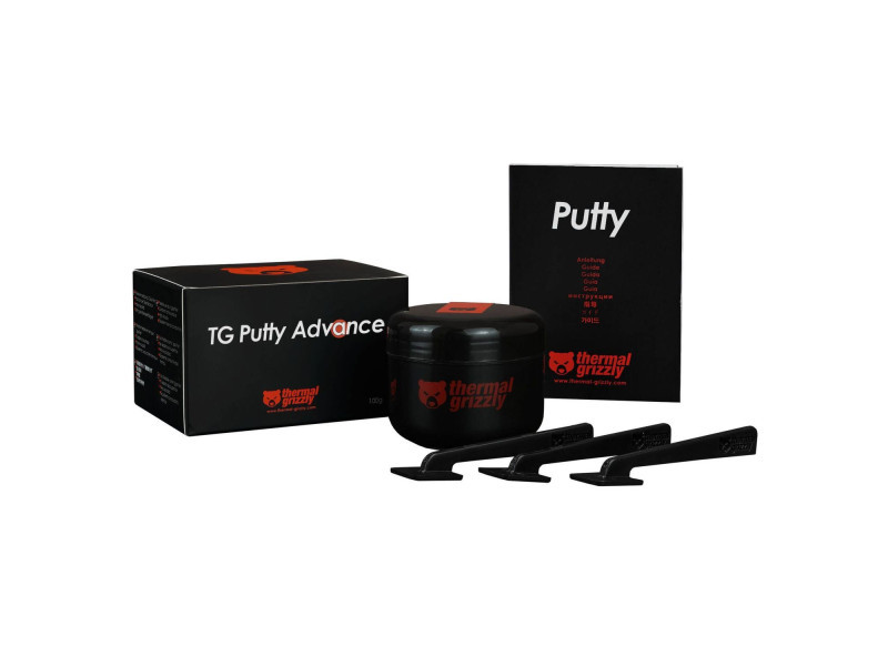 A rugalmas alternatíva a hővezető padok helyett: A Thermal Grizzly Putty Advance A Thermal Grizzly Putty egy elektromosan nem vezető alternatíva a hagyományos hővezető padokhoz. Könnyen felvihető és rugalmas réskitöltőként kiegyenlíti a magasságkülönbségeket, így ideális helyettesítője a hővezető padoknak grafikus kártyákon és más eszközökön. - Rugalmas helyettesítője a hővezető padoknak, sokoldalú felhasználási területtel. - Különösen alkalmas olyan hűtőbordákhoz, amelyek különböző távolságra vannak a fontos komponensektől. - Advance változat magas hővezető képességgel, erősebb komponensekhez. - Biztonságos alkalmazás az elektromosan szigetelő tulajdonságának köszönhetően. Gyárilag általában többféle, különböző magasságú hővezető padot használnak, így a padok cseréjekor vagy a hűtő GPU-vízhűtőre való átalakításakor több különböző padra is szükség van. Ezt a problémát oldja meg a Thermal Grizzly Putty rugalmas alkalmazhatósága. Mennyi Thermal Grizzly Puttyra van szükségem? Egyetlen, kisebb grafikus kártya hátlap nélküli átalakításához (pl. GeForce GTX 1060) körülbelül egy 30 grammos Thermal Grizzly Putty doboz szükséges. Egy nagyobb grafikus kártya, például egy GeForce RTX 4090 esetében általában egy 30 grammos doboz elegendő az előlapon lévő memória (VRAM) és feszültségszabályzók (VRM) számára. A nagyobb grafikus kártyák hátoldalán, a PCB és a hátlap között gyakran egységes, nagyobb távolság van a két felület között. Itt körülbelül két 30 grammos dobozra vagy egy 100 grammos dobozra van szükség, ha ezt a távolságot teljesen ki akarjuk tölteni. Három változat különböző alkalmazási területekre Három különböző változattal a gyártó minden teljesítményosztályhoz megfelelő terméket kínál. A Basic változat hatékony komponensekhez alkalmas, amelyek csekély hőtermelést okoznak. Az Advance változat viszont magasabb hővezető képességével a középkategóriás szegmensbe tartozik, erősebb komponensekkel. A High-End szegmens számára a Thermal Grizzly a Putty Pro-t kínálja, amely különösen jó hővezető képességének köszönhetően optimális hűtést biztosít a high-end komponenseknek. Rugalmas és biztonságos alkalmazás Felhordás előtt a célfelületet alaposan meg kell tisztítani és zsírtalanítani, például a Thermal Grizzly tisztítókendőivel vagy kereskedelmi forgalomban kapható izopropanollal. A mellékelt spatulával a széles felületen is felvihető az elektromosan szigetelő tulajdonságának köszönhetően. Alternatívaként a Thermal Putty kézzel is kis golyókká formázható, amelyek méretükben a felhordandó felülethez (pl. VRAM, SMD) igazíthatók. Műszaki adatok Kiszerelés Tartalom (súly): 100 g