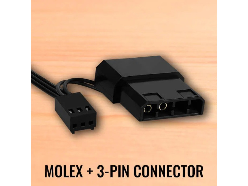 140 mm-es ventilátor Molex + 3-tűs csatlakozóval, stílusos Fix RGB LED világítással, amely extra hangulatot kölcsönöz a berendezésnek. Ívelt ventilátorlapátokkal van felszerelve a nagyobb légnyomás érdekében, maximalizálva a hűtési teljesítményt és minimalizálva a légellenállást és a zajt.