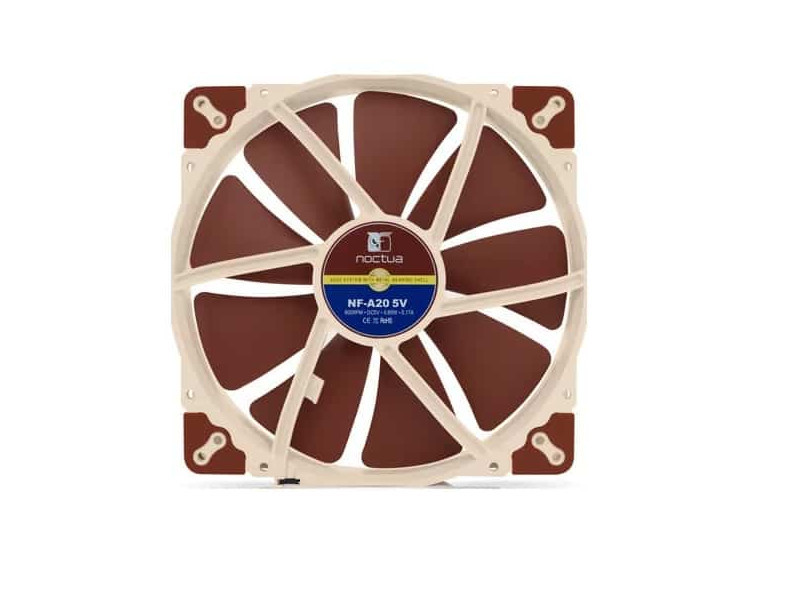 Az NF-A20 5V a Noctua díjnyertes, prémium minőségű NF-A20 200 mm-es ventilátorának dedikált 5 V-os változata. Az AAO (Advanced Acoustic Optimization) szabványos kerettel és az olyan kifinomult aerodinamikai tervezési intézkedésekkel, mint például az áramlási gyorsulási csatornák, az NF-A20 5V kiváló teljesítményéről és kiemelkedő működési nyugalmáról híres