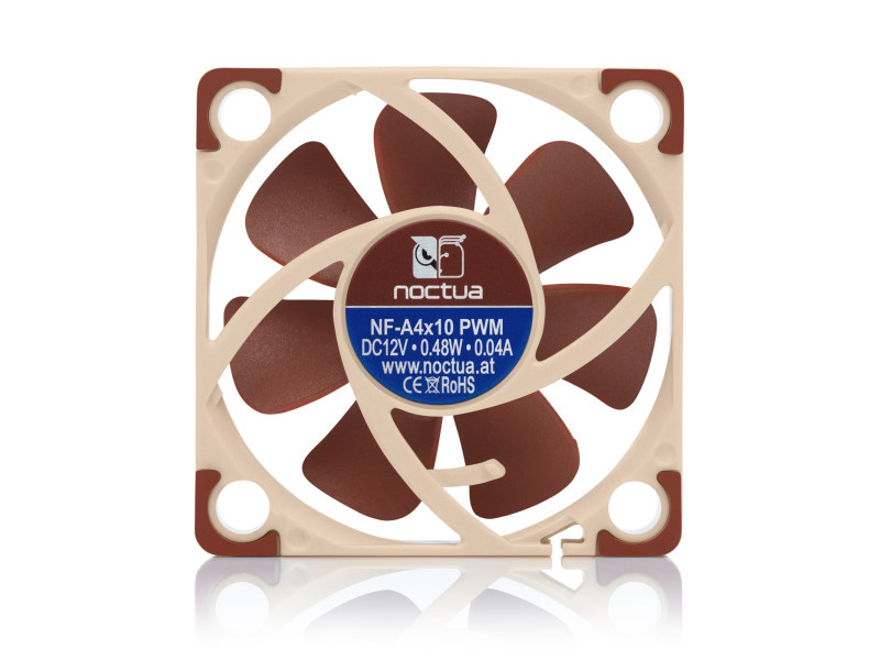 Az NF-A4x10 egy magasan optimalizált ventilátor, Flow Acceleration Channel technológiával, egyedi kialakítású AAO kerettel. A PWM verziót egyedileg tervezett NE-FD1 IC vezérli, teljesen automatikusan. A sebességcsökkentő adapterrel a maximális fordulatszám 5000-ről 3700-ra változtatható, PWM vezérlés közben is.
