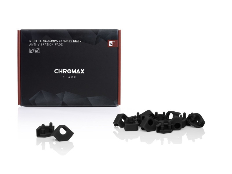 Az NA-SAVP5 chromax.black egy ventilátor-tartozékkészlet, amely 16db fekete NA-AVP5 rezgéscsillapító betétből áll, kompatibilis 80/92 mm-es ventilátorhoz (lásd a kompatibilitási információkat ). Az extra puha szilikonból készült NA-AVP5 párnák minimalizálják az apró rezgések átvitelét, miközben megőrzik a teljes kompatibilitást a szabványos ventilátorcsavarokkal és a legtöbb egyéb rögzítési rendszerrel. A chromax.black kiadás ideális a teljesen fekete összeállításokhoz a Noctua chromax és industrialPPC ventilátoraival.