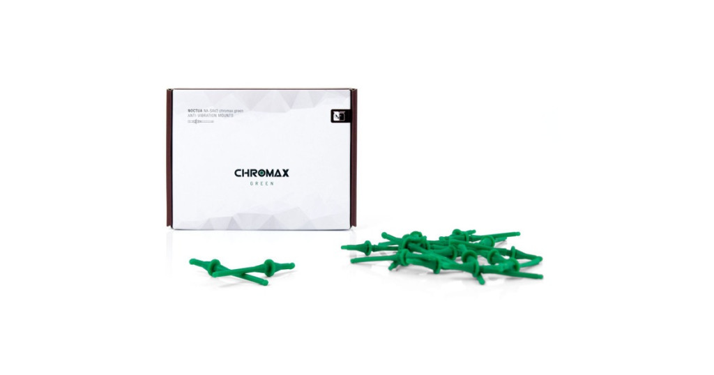 A NA-SAV2 chromax.green egy ventilátor kiegészítő szett, mely 20db fekete NA-AV2-es vibrációcsökkentő ventilátor rögzítőt tartalmaz maximum 5 ventilátorhoz. A normál rögzítőcsavarok lecserélésével az NA-AV2 nem csak egyszerűbbé és gyorsabbá teszi a szerelést, zöld színben.