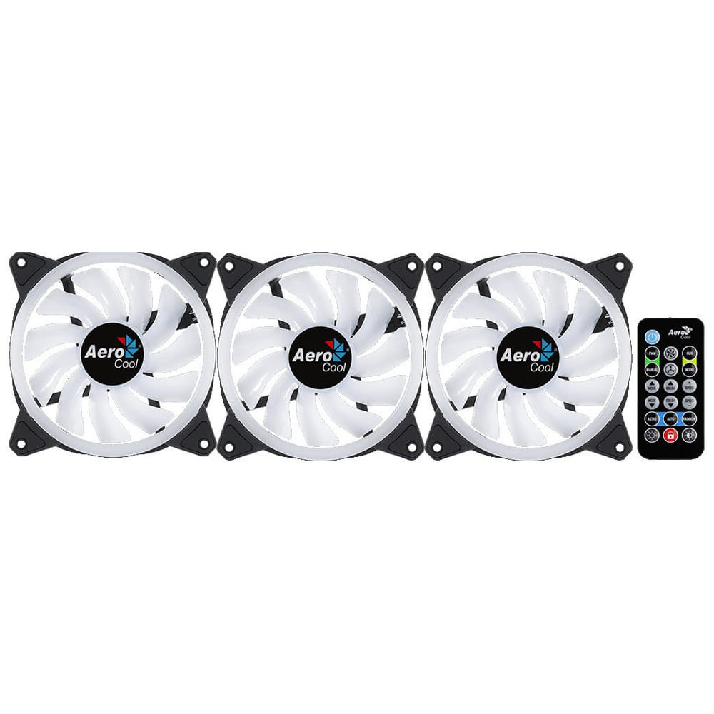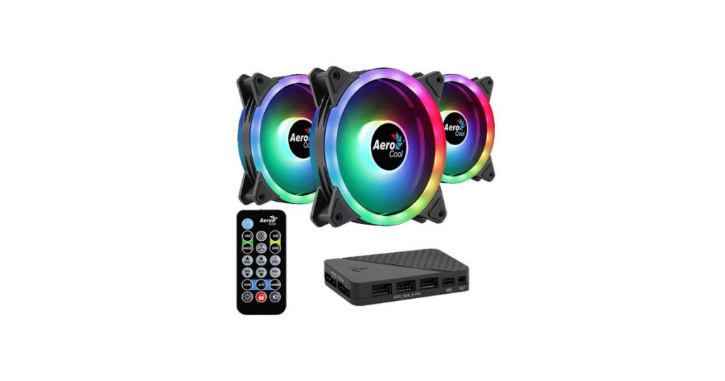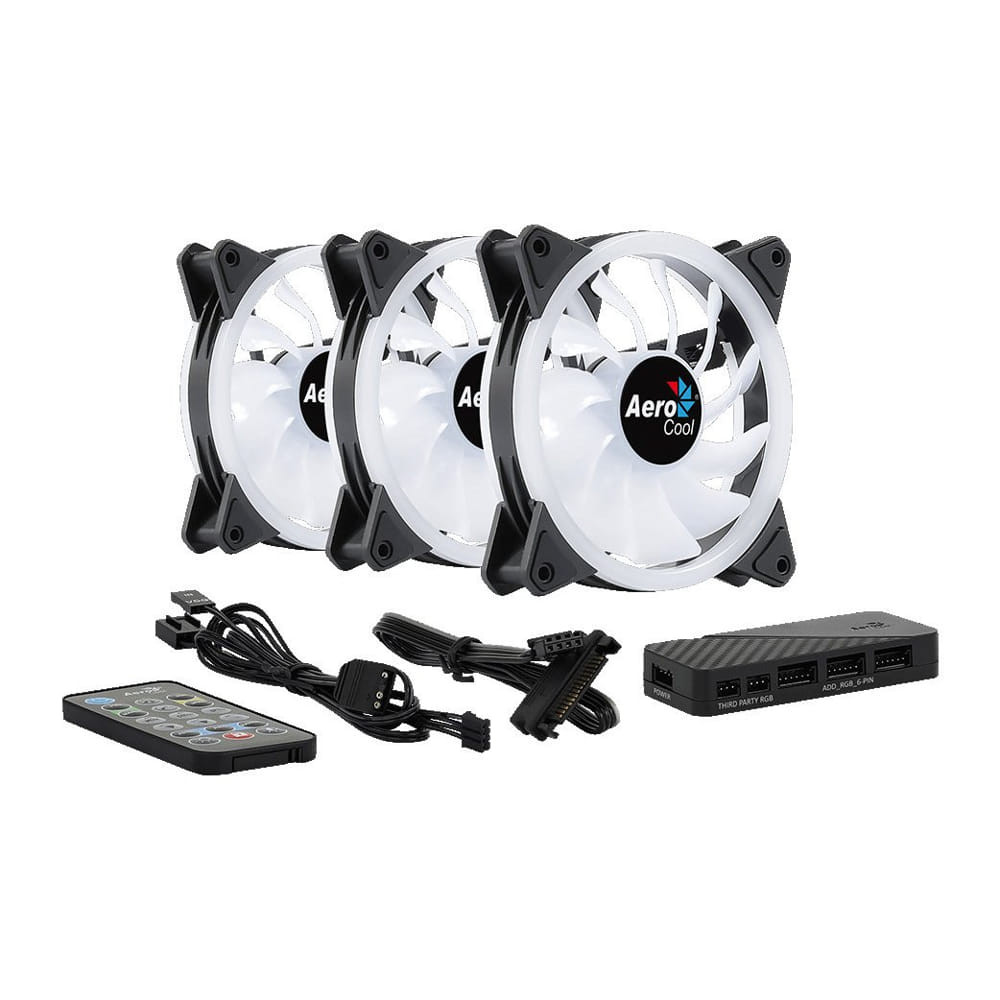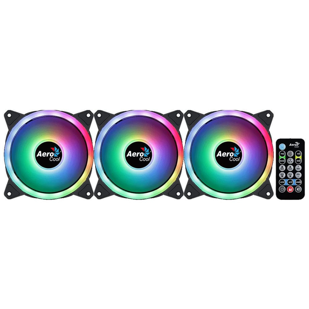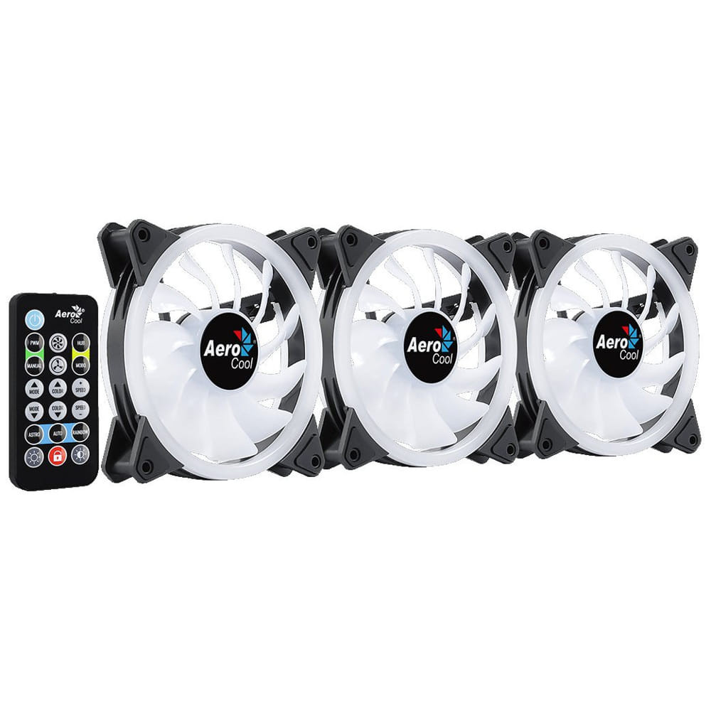 Aerocool Duo 12 Pro házhűtő ventilátor szett, ARGB, 3 db, dupla LED gyűrű, H66F hub, fekete