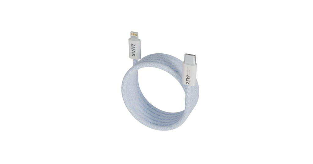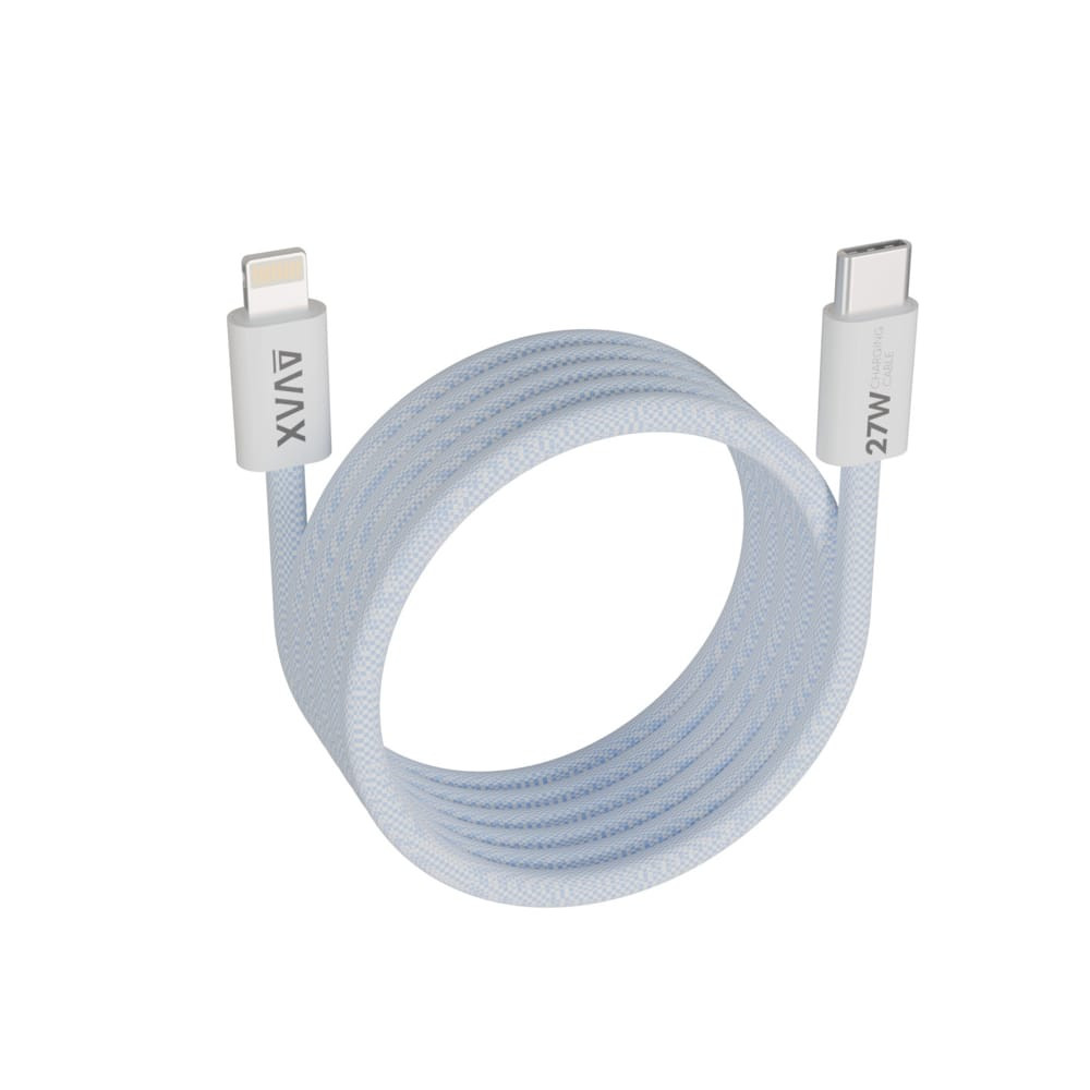 AVAX MAGNETY USB Type-C - Lightning mágneses gyorstöltő kábel, 1.0m, fonott, világoskék - CB611LB