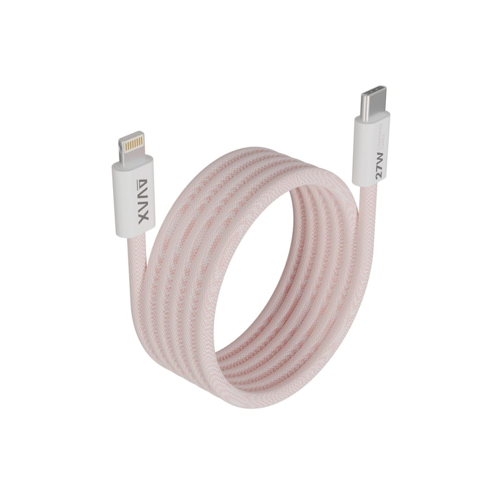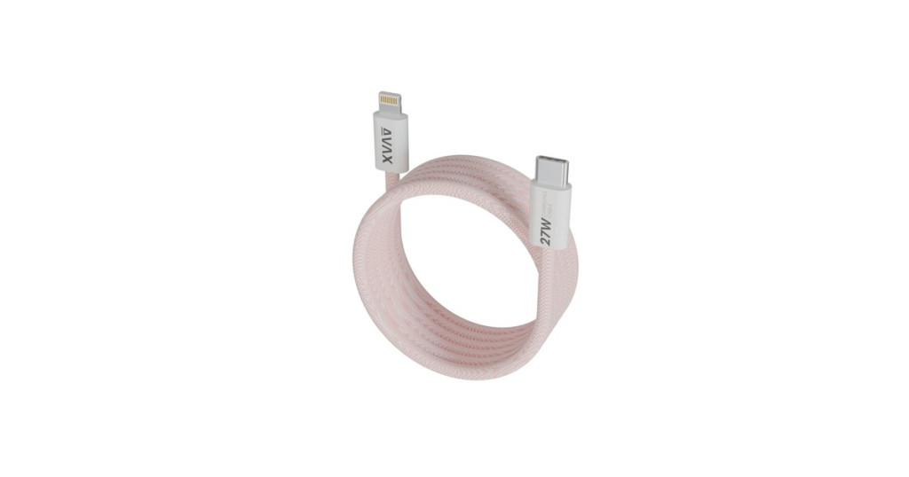 AVAX MAGNETY USB Type-C - Lightning mágneses gyorstöltő kábel, 1.0m, fonott, rózsaszín - CB611P