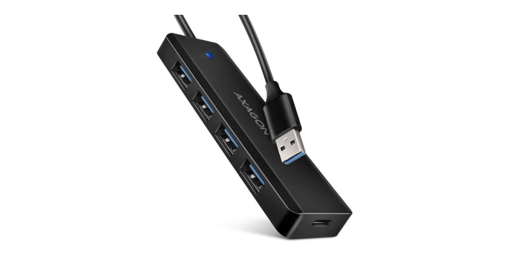Axagon HUE-C1A USB-A 4 portos hub, 5Gbps, külső táp támogatás, fekete