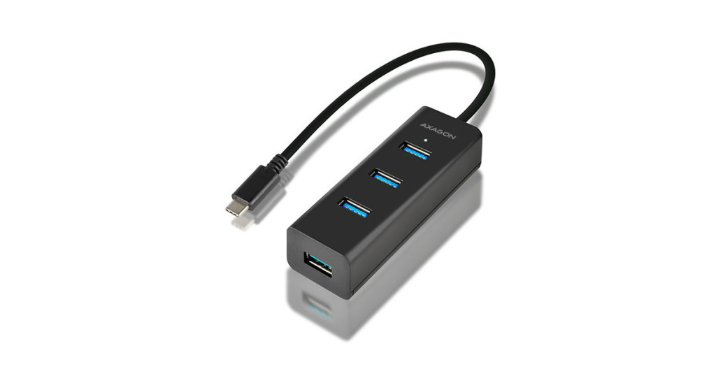 Axagon HUE-S2C USB-C hub, 4 port, USB 3.2 Gen 1, gyorstöltés támogatás, fekete