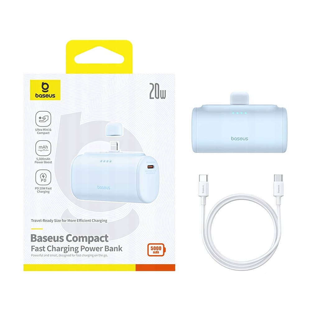 Baseus Compact 5000mAh 20W Powerbank beépített iPhone csatlakozóval, kék