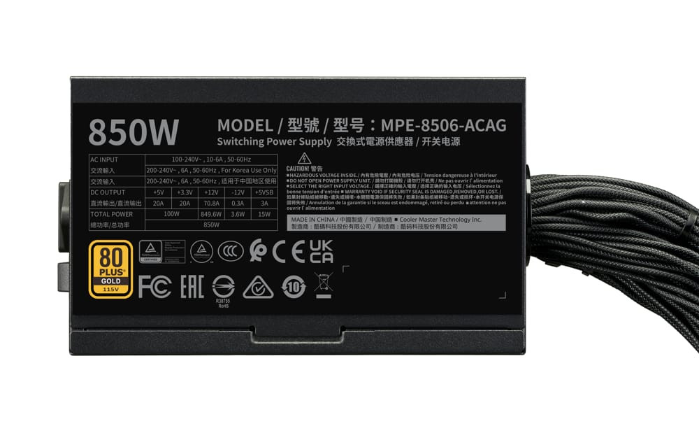 Cooler Master MWE Gold 850 V3 ATX 3.1 nem moduláris tápegység, 80+ Gold, 850W - MPE-8506-ACAG-BEU
