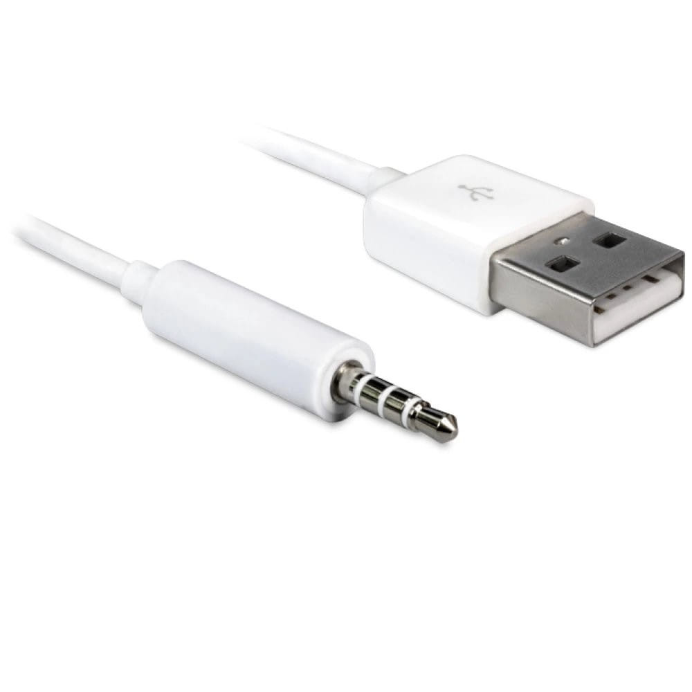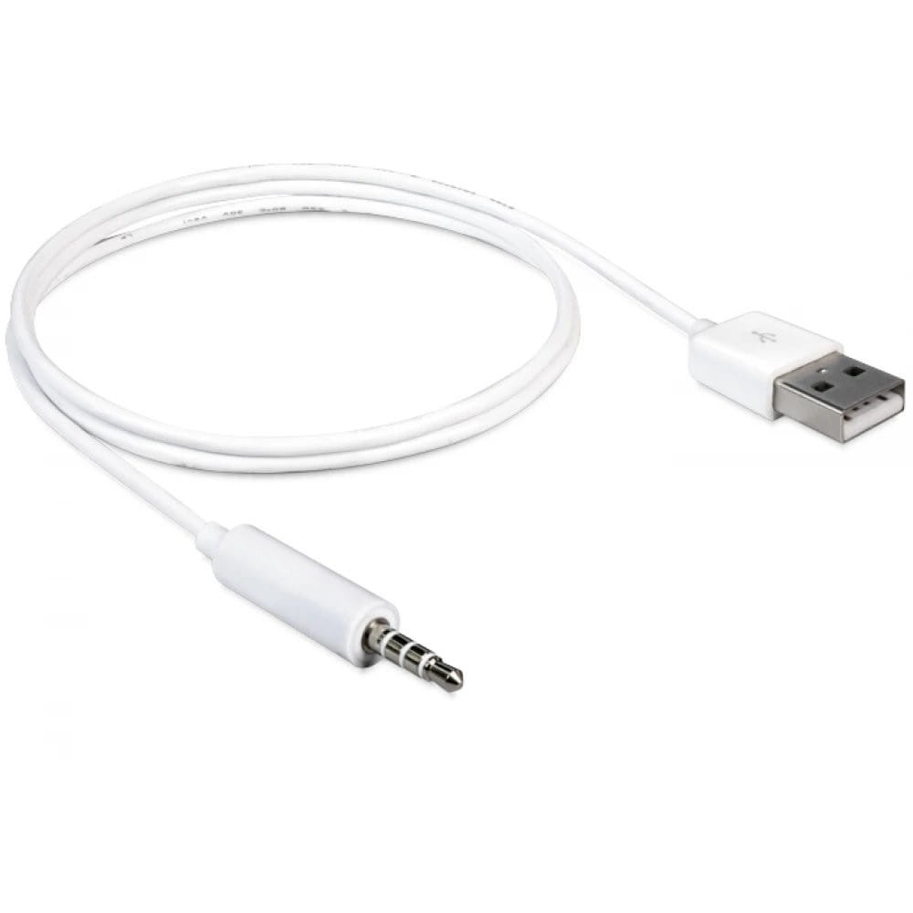 Delock USB-A - 3.5 mm jack kábel iPod Shuffle lejátszókhoz, töltés és adatátvitel, fehér