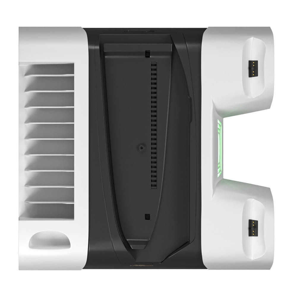 FroggieX PlayStation 5 hűtő és töltő állvány, 2 kontroller töltés, ventilátoros hűtés, fehér - FX-P5-C4-W