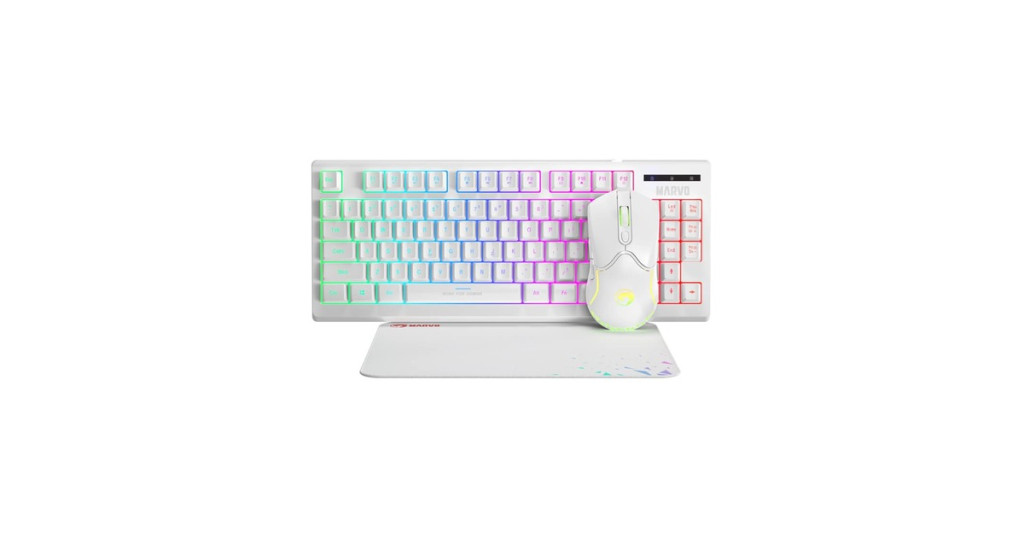 Marvo Loot 30 White vezetékes gamer szett, TKL billentyűzet, egér, egérpad, RGB világítás, UK kiosztás - CM310