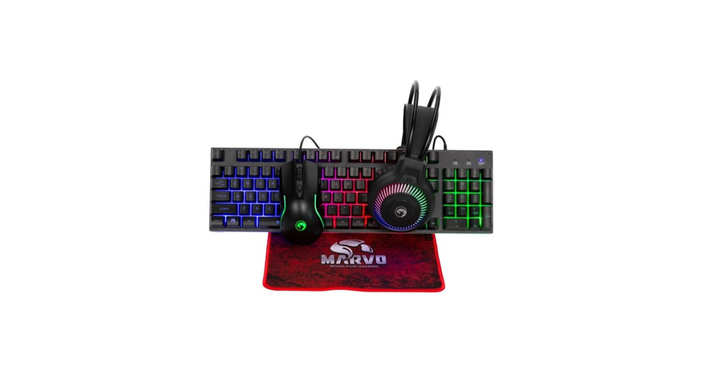 Marvo Loot 40 vezetékes gamer szett, billentyűzet, egér, headset, egérpad, RGB világítás, UK kiosztás - CM416