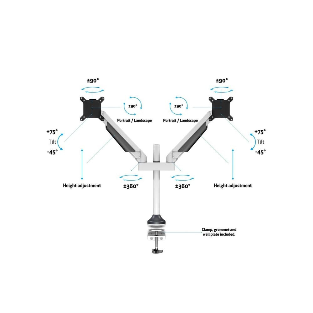 Multibrackets M VESA Gas Lift Arm Dual monitortartó kar, 2x15-32", monitoronként 2-10kg, fehér