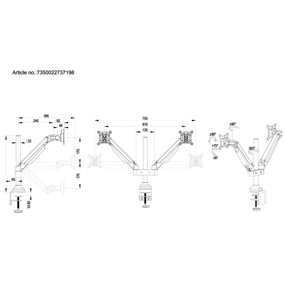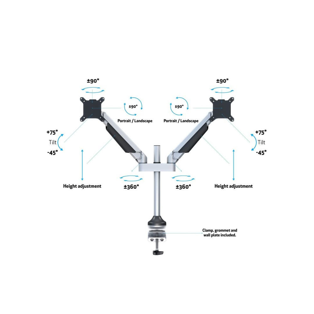 Multibrackets M VESA Gas Lift Arm Dual Silver asztali monitortartó kar, 2x15-32", monitoronként max. 10 kg, ezüst