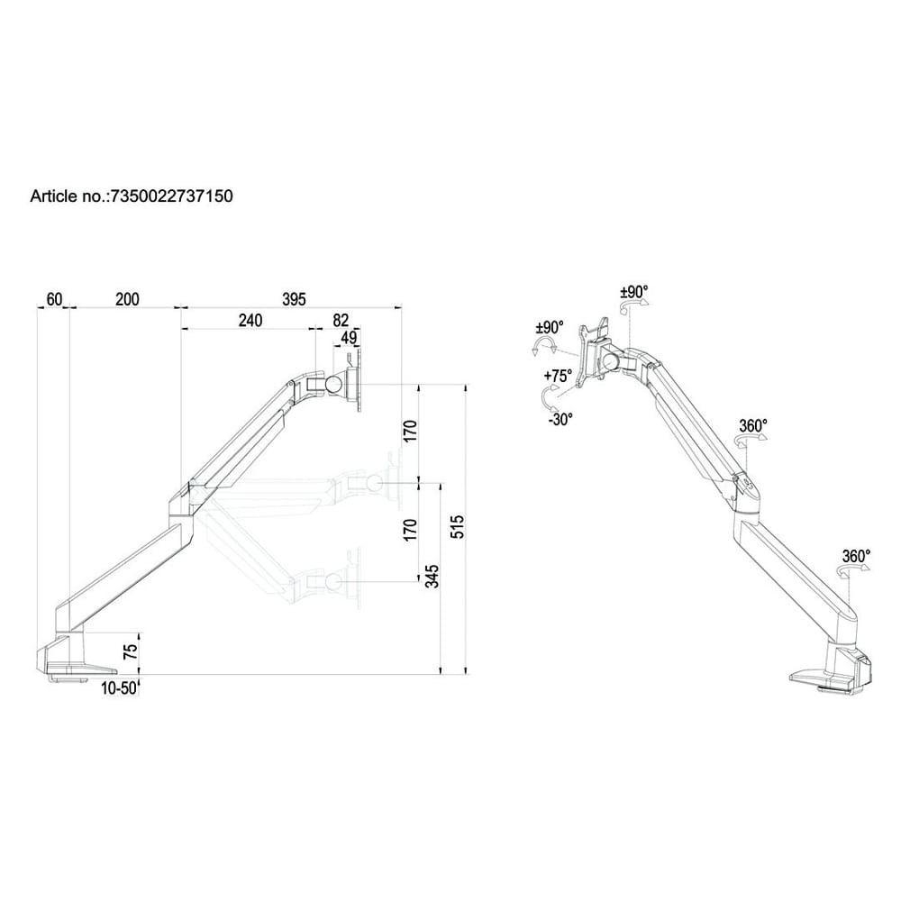 Multibrackets M VESA Gas Lift Arm Single White asztali monitortartó kar, 15-34", max. 10 kg, fehér