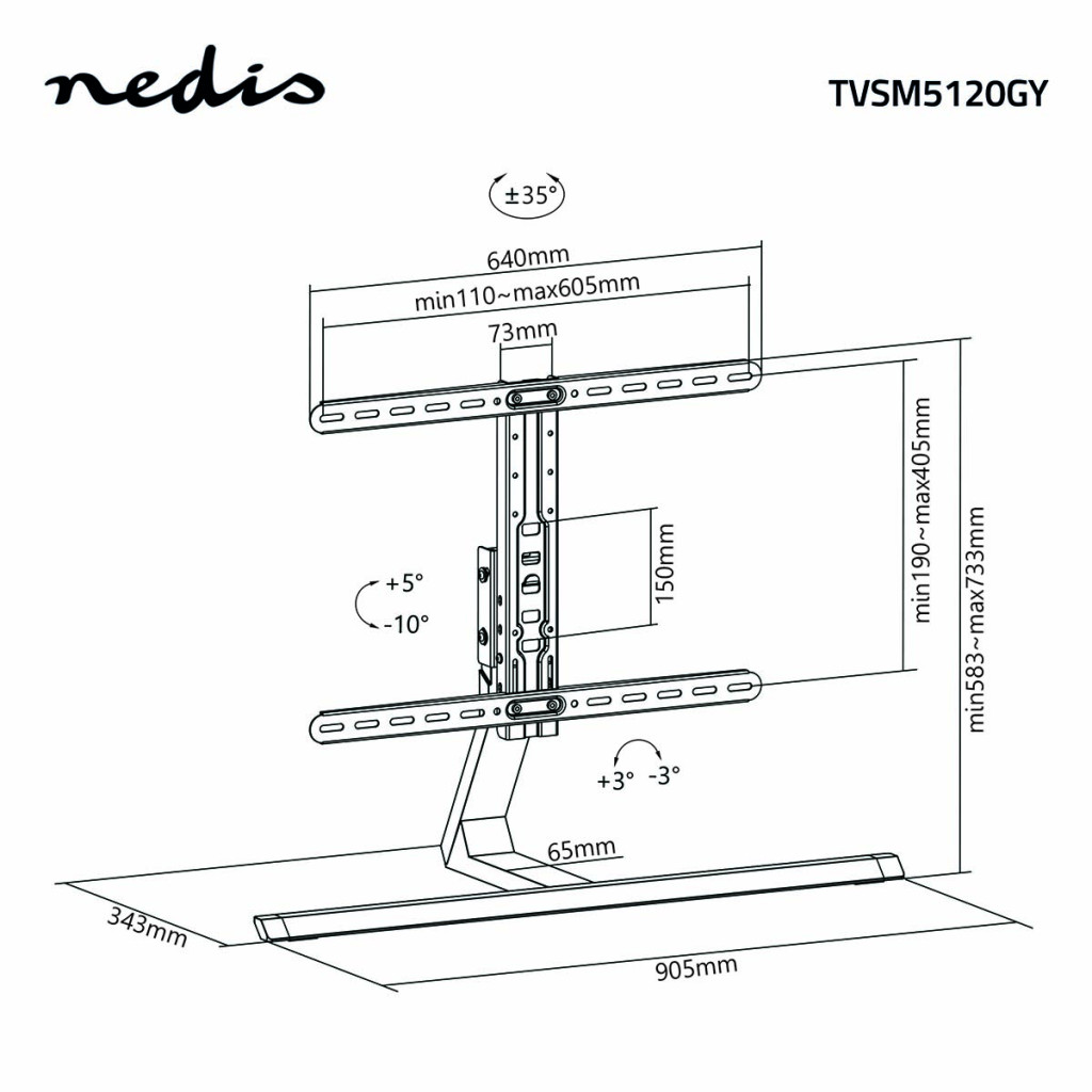 Nedis Asztali TV-Állvány 37–75" – Dönthető, Forgatható, 40 kg-ig, 5 Magassági Pozícióval - TVSM5120GY
