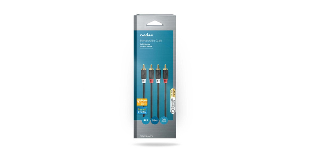 Nedis CABW24200AT50 stereo audio kábel, 2x RCA apa – 2x RCA apa, aranyozott, 5 m, antracit