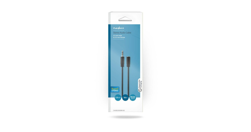 Nedis CAGB22050BK100 sztereó audio hosszabbító kábel, 3.5 mm apa - 3.5 mm anya, 10 m, fekete
