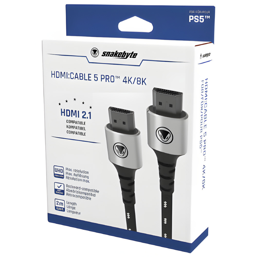 Snakebyte PS5 HDMI Pro kábel, 2.0m, 4K/8K, fonott, fekete-fehér