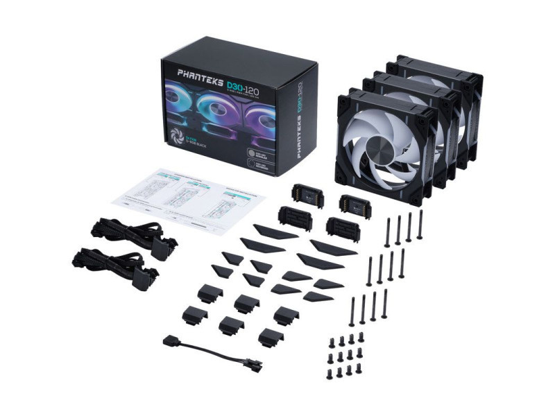 Ventilátor PHANTEKS D30 PWM Regular Airflow D-RGB L 12cm, 3 darabos szett, Fekete