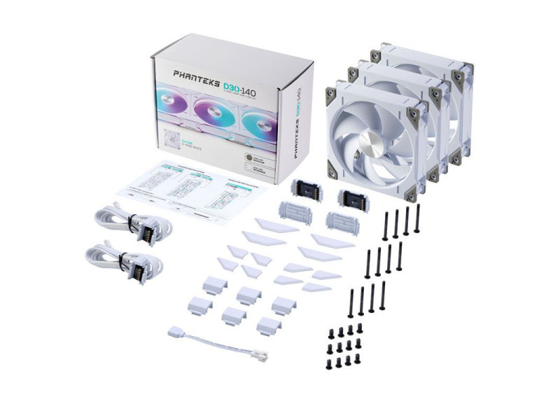 Ventilátor PHANTEKS D30 PWM Fan, DRGB, 3db-os szett - 140mm, Fehér